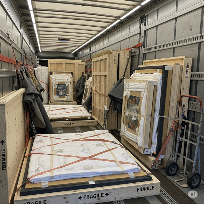 • Bezpieczeństwo: Każde dzieło jest odpowiednio zabezpieczone w skrzyniach transportowych i monitorowane w trakcie całej podróży.
